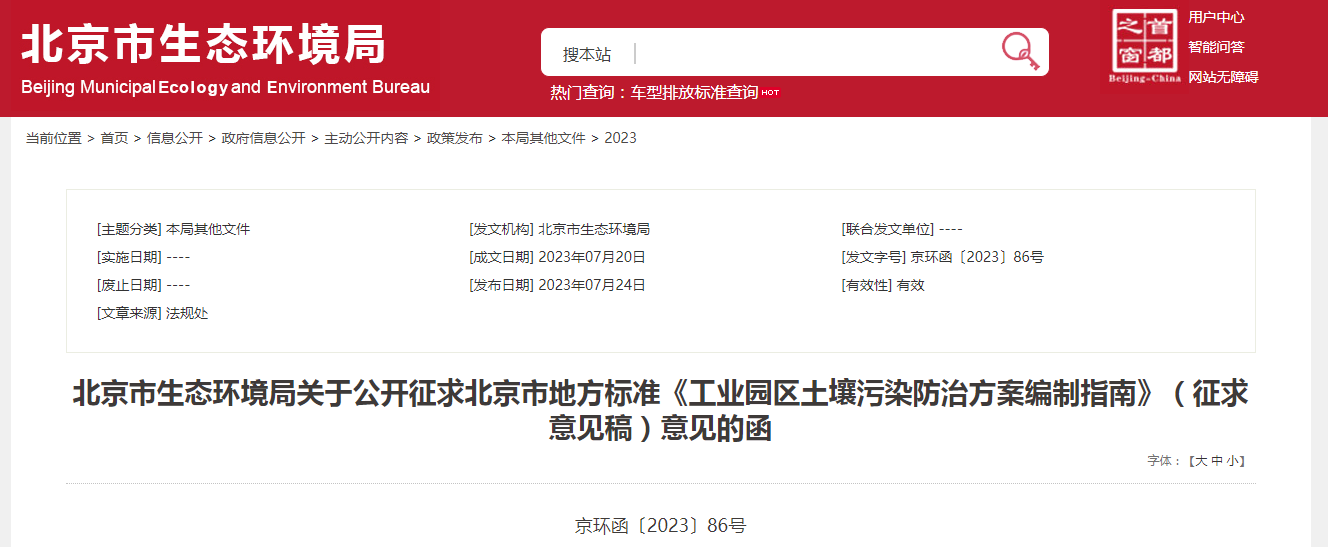 北京市生態(tài)環(huán)境局正就《工業(yè)園區土壤污染防治方案編制指南》廣泛征求意見(jiàn)