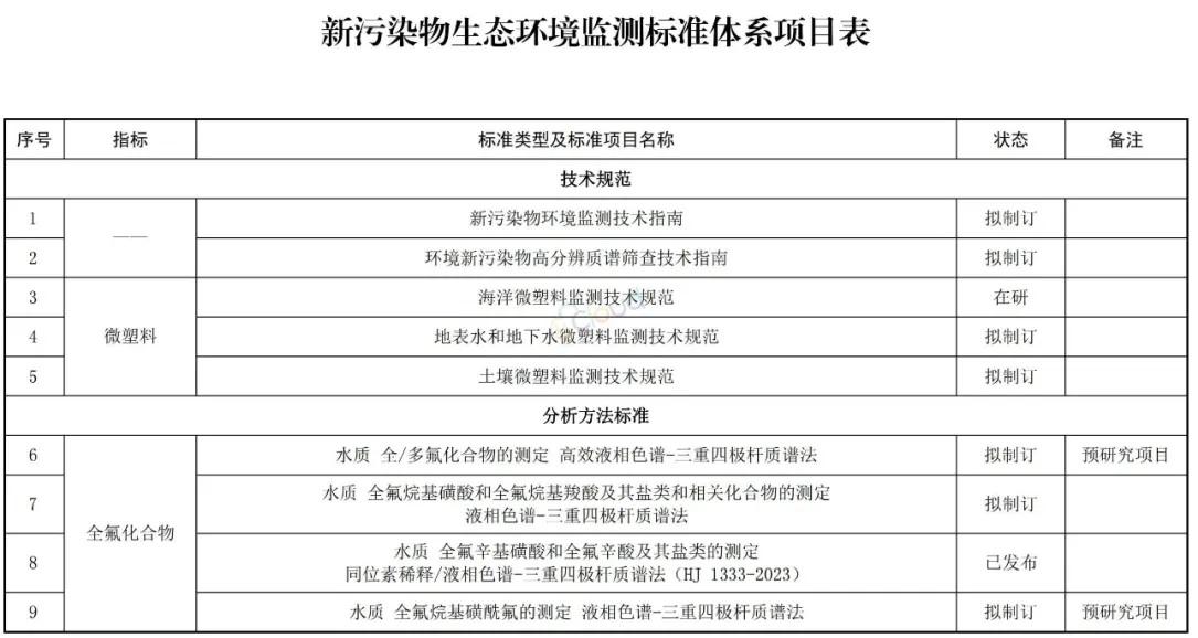 《新污染物生態(tài)環(huán)境監測標準體系表(2024年版)》印發(fā)