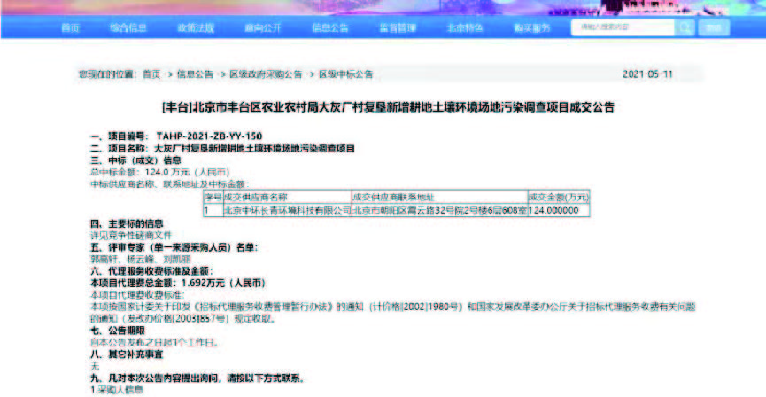 中環(huán)長(cháng)青確定的2021年工作目標是“打造明星產(chǎn)品,做好知名服務(wù)、提升增值業(yè)務(wù)”;在“土壤、固廢、危廢、場(chǎng)地修復”這一環(huán)境保護技術(shù)領(lǐng)域的細分市場(chǎng),中環(huán)長(cháng)青始終深耕“土壤、固廢、危廢、場(chǎng)地修復”綜合服務(wù),持續的技術(shù)積累和咨詢(xún)、檢測、治理修復類(lèi)項目的快速完結,為中環(huán)長(cháng)青樹(shù)立了良好行業(yè)形象,取得市場(chǎng)口碑。近日,通過(guò)招投標比選:北京中環(huán)長(cháng)青環(huán)境科技有限公司中標農業(yè)農村局復墾新增耕地土壤環(huán)境場(chǎng)地調查項目,再獲得土壤場(chǎng)地調查類(lèi)項目定單。