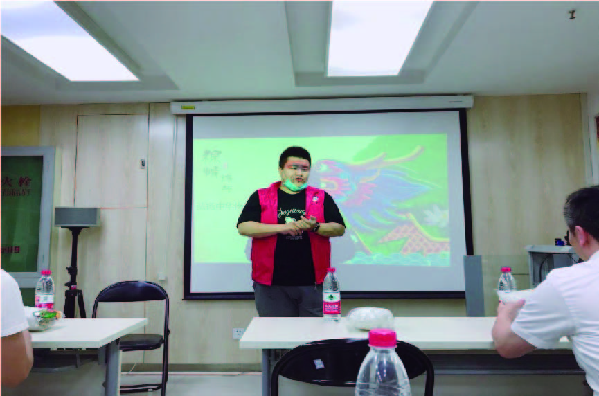 在了解了端午的民俗后,老師帶領(lǐng)大家深度體驗端午傳統民俗中的一項,手工制作香囊。別具特色的小龍,陣陣飄香的艾草以及參與人的熱情,一時(shí)洋溢在整個(gè)房間。大家互相幫忙,穿針引線(xiàn),看著(zhù)此情此景,不由在想這也許就是“團結”。不因不熟而冷漠,而拒絕??此埔粋€(gè)小小的香囊的制作,卻彰顯出了在中國共產(chǎn)黨的領(lǐng)導下,人民團結一致,才得以有如此幸福的生活。