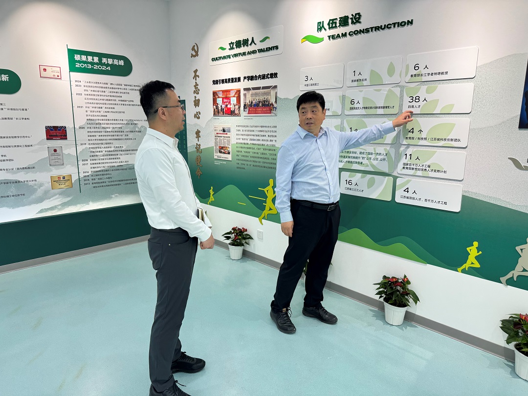 在南大環(huán)境學(xué)院成立40周年院史陣列館,任洪強院士向穆彬董事長(cháng)介紹:近年來(lái),環(huán)境學(xué)院形成了“理工文融合、產(chǎn)學(xué)研貫通”優(yōu)勢與特色、“產(chǎn)教融合、雙向延伸、因類(lèi)制宜”的環(huán)境類(lèi)新工科人才特色培養體系、“人才培養-基礎研究-技術(shù)研發(fā)-標準研制-成果轉化”平臺體系,已發(fā)展為具有重要國際影響的環(huán)境類(lèi)高端人才培養、高水平科學(xué)研究、特色化社會(huì )服務(wù)高地。