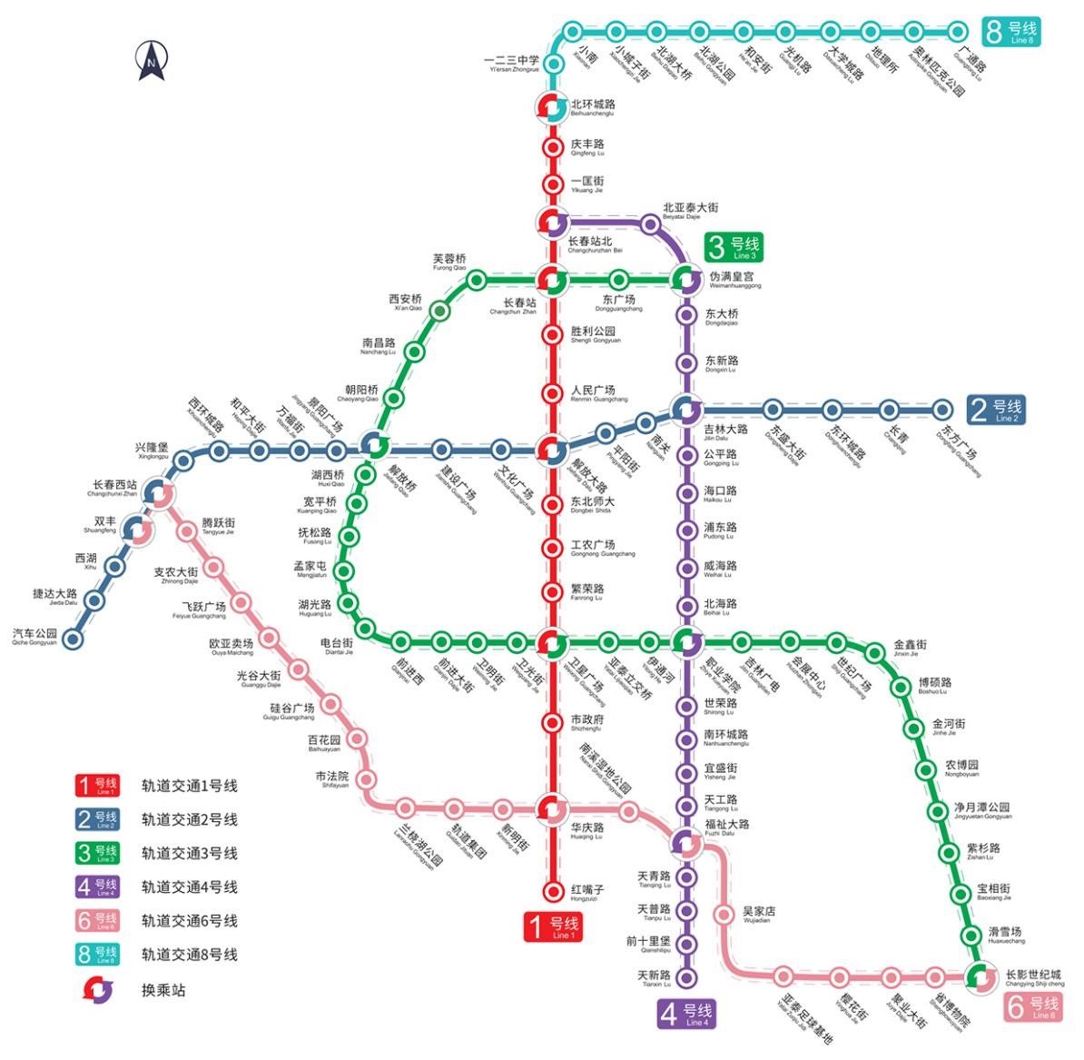 4號線(xiàn)(長(cháng)春站北-天工路站)是吉林省長(cháng)春市第二條開(kāi)通運營(yíng)的軌道交通線(xiàn)路,全長(cháng)15.953km,采用高架和地下方式敷設。共設16座車(chē)站,其中地下站3座,高架站13座,換乘站4座。在線(xiàn)路南端設天工路綜合檢修基地一座。于2011年6月30日開(kāi)通觀(guān)光運行,2013年2月3日開(kāi)通試運營(yíng),標識色為紫色。8號線(xiàn)一期是吉林省長(cháng)春市第五條開(kāi)通運營(yíng)的軌道交通線(xiàn)路,全長(cháng)13.276km,全部為高架方式敷設。共設車(chē)站12座,其中換乘站4座。在繞城高速外側、中科大街東側線(xiàn)路終點(diǎn)設太平村綜合檢修基地一座。于2018年10月30日開(kāi)通運營(yíng),標識色為青色。